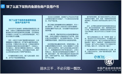 比如有一件事情,去年10月份,餓了么突然受到很多媒體特別是自媒體的攻擊,“你平臺(tái)上面怎么有這么多賣(mài)狗肉的店?這是極其野蠻的行為,為什么吃狗肉?”批評(píng)的聲浪越來(lái)越大,所以我們決定回應(yīng)。如何得體處理其實(shí)很難的:如果要下架狗肉,吃狗肉的人會(huì)覺(jué)得你矯情,不顧及他們的利益;如果不下,愛(ài)狗人士會(huì)認(rèn)為你沒(méi)有底線(xiàn),更要繼續(xù)圍攻你。但無(wú)論愛(ài)狗人士、吃狗肉的人士,都是平臺(tái)的用戶(hù),我們都需要團(tuán)結(jié)。