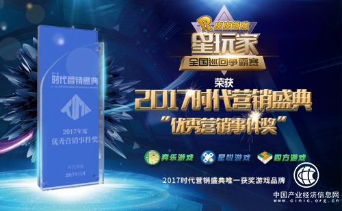 憑借此次在傳播、受眾參與度、品牌影響力的出色表現(xiàn),四方游戲星玩家全國巡回爭霸賽獲得2017時代營銷盛典“優(yōu)秀營銷事件獎”,成為唯一入選該獎項的游戲企業(yè),同時入選的有光大銀行“深港澳擊劍公開賽”、上海通用汽車“2017年凱迪拉克營銷案例”等行業(yè)優(yōu)秀營銷案列。