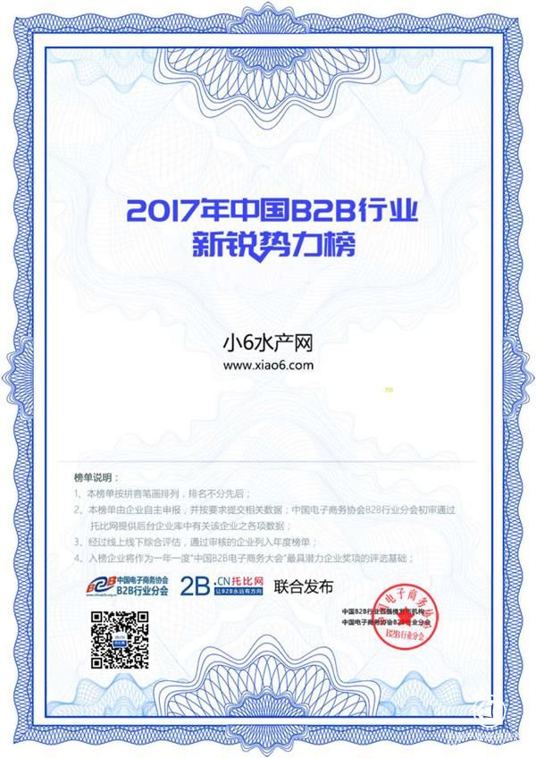 小6水產(chǎn)網(wǎng)榮登“2017中國B2B行業(yè)新銳勢力榜”