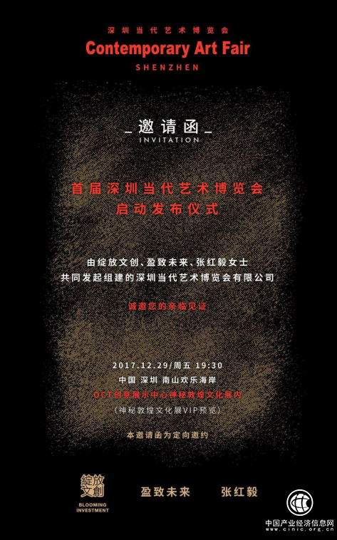 由深圳市綻放文創(chuàng)投資有限公司創(chuàng)始人楊鉅澤先生、深圳市盈致未來文創(chuàng)管理有限公司和從事投資的深圳藏家俱樂部理事張紅毅女士共同發(fā)起、聯(lián)合專業(yè)藝術(shù)團隊組建的深圳當代藝術(shù)博覽會有限公司,將于2018年9月21日舉辦首屆深圳當代藝術(shù)博覽會。該展覽會將聚集全國乃至全球知名畫廊、藝術(shù)機構(gòu)、藝術(shù)家,以專業(yè)和高標準的態(tài)度呈現(xiàn)精彩紛呈的藝術(shù)展覽與文藝活動,豐富市民文化生活,促進文化藝術(shù)交流與繁榮,也將更好地匹配深圳作為國際化城市的文化形象,打造深圳文化名片,提升城市文化藝術(shù)世界影響力。