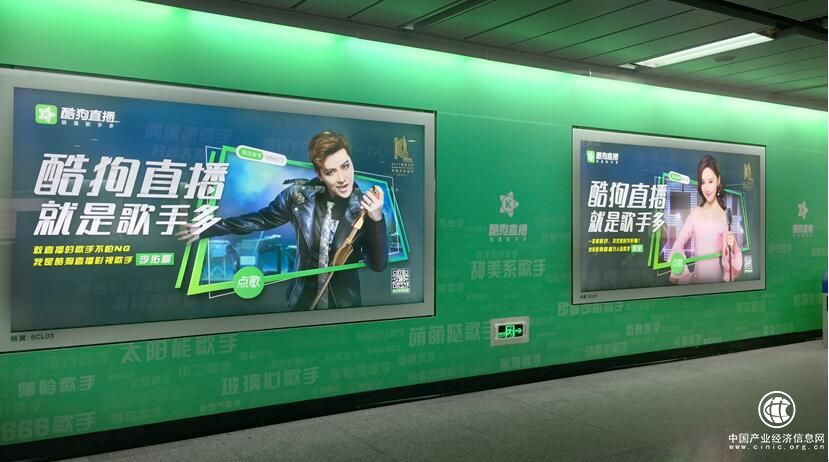 一走入地鐵站,不同于以往的沉悶,一股充滿清新能量的綠色撲面而來,配合著墻貼上各種新奇有趣的歌手標(biāo)簽,太陽能歌手、666歌手、甜美系歌手……讓人情不自禁對號入座,浮想聯(lián)翩。與此同時,7幅巨幅海報映入眼簾,有高顏值的女神范、嘻哈范、暖男小鮮肉等,配上朗朗上口的“酷狗直播,就是歌手多”,讓人記憶深刻,也直呼“太養(yǎng)眼”。
