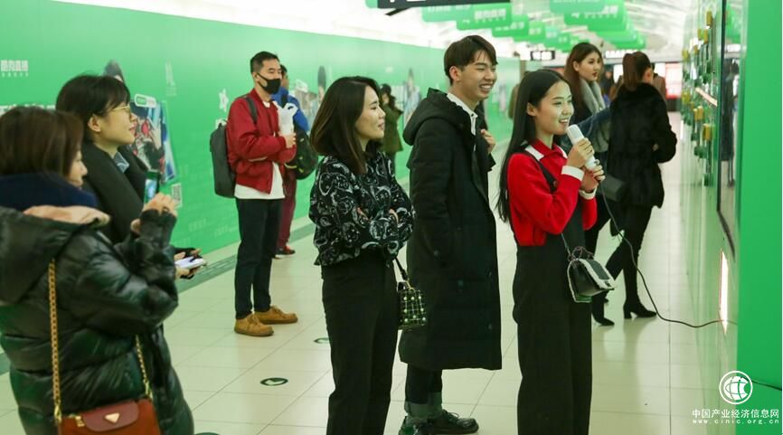 在互動墻滿是文字云的大屏幕面前,拿起白色麥克風(fēng)就能亮亮嗓,唱出你想唱的歌,過把K歌癮。這種前所未見的地鐵新裝置,引來了不少少女、孩子的駐足和參與,瞧,大家都躍躍欲試呢!