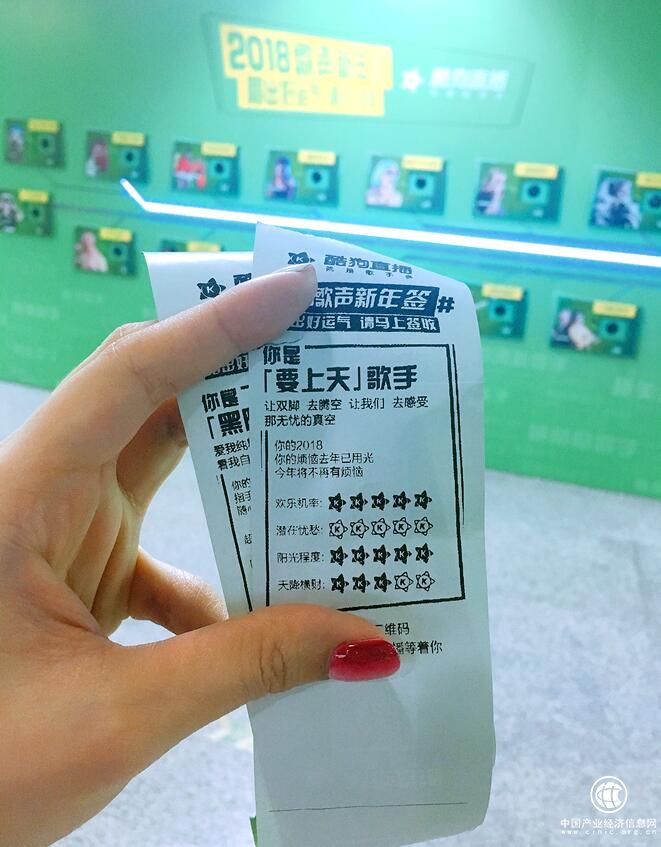 重磅玩法,在喇叭旁邊還能打印出一張#2018歌聲新年簽#,簡直是新鮮出爐啊,各種趣味簽文,歡樂指數(shù)5顆星,陽光程度5顆星,可謂是好運爆棚。每個唱歌的人都能測算出歌手類型,并領(lǐng)到專屬新年簽。大家都紛紛領(lǐng)取,并在微博上曬了一把。