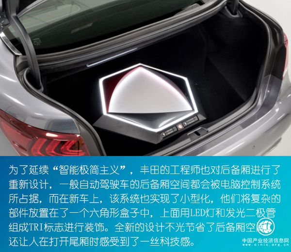 之前車型上最不協(xié)調(diào)的就是車頂雷達(dá)的設(shè)計(jì),不過在新車上我們發(fā)現(xiàn)車頂造型有了明顯的變化。而用豐田自己的話來說,這是運(yùn)用“智能極簡(jiǎn)主義”的結(jié)果。