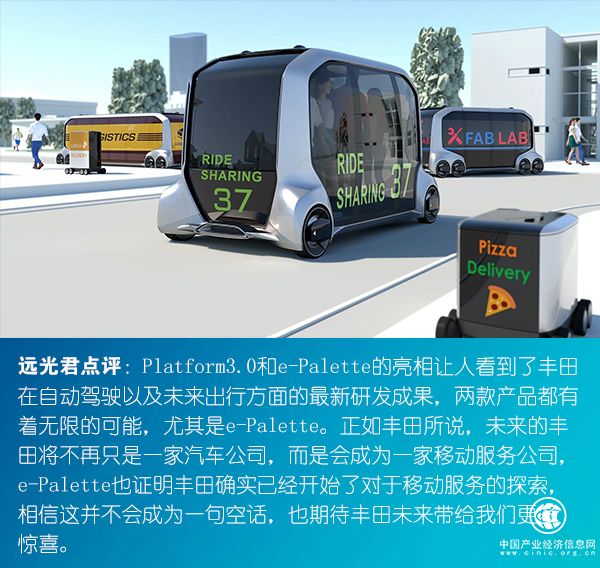 除了“Platform3.0”自動(dòng)駕駛車,豐田還帶來了全新出行平臺(tái)e-Palette。豐田公司社長(zhǎng)豐田章男也表示,未來的豐田將不再只是一家汽車公司,而是會(huì)成為一家移動(dòng)服務(wù)公司,公司將會(huì)同谷歌、Facebook等科技巨頭競(jìng)爭(zhēng)。