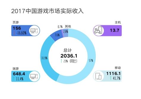 目前,中國已經(jīng)成為全球最重要的游戲市場。在中國音數(shù)協(xié)游戲工委(GPC)去年12月發(fā)布的2017年的《中國游戲產(chǎn)業(yè)報告》中顯示,2017年中國游戲市場實際銷售收入達(dá)到2036.1億元,同比增長23.0%。使中國在全球游戲市場吸金榜單上蟬聯(lián)第一,排在第二和第三的是美國和日本。