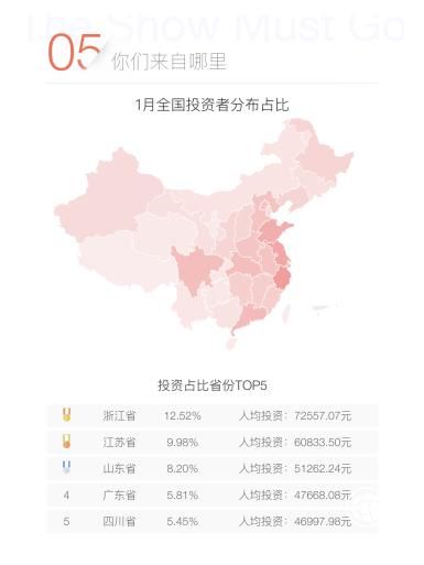 在所有用戶(hù)中人數(shù)位于前三的省份分別為浙江、江蘇和山東。并且,女性投資者占比超過(guò)男性投資者約5個(gè)百分點(diǎn),可見(jiàn),相較于男性,女性用戶(hù)愿意在理財(cái)中投入更多的可支配收入。