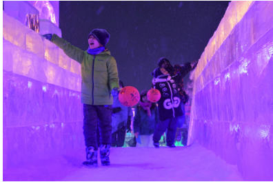哈爾濱師范大學的師生來到七彩冰雕大世界,跟隨著冰燈工藝傳承人學習冰燈制作,一件件晶瑩剔透的冰燈雕塑閃爍著美的光芒。