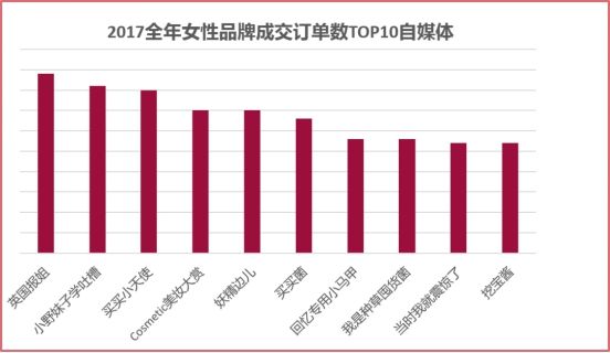 與此同時(shí),微播易也分析了2017年全年女性品牌投放社媒成交訂單數(shù)最多的10個(gè)自媒體,如下圖: