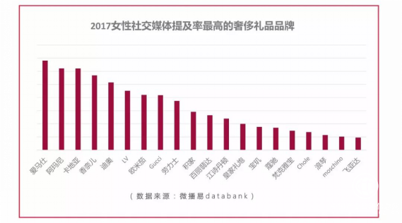 最后,再一起來看看,女性社媒賬號中最常出現(xiàn)的美妝、服飾、奢品禮品品牌,它們是不是也切中了你的關(guān)注呢?