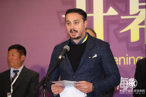 國際參展商代表在2018海寧中國國際皮革毛皮原輔料展暨海寧中國時裝面料展開幕式上發(fā)言。