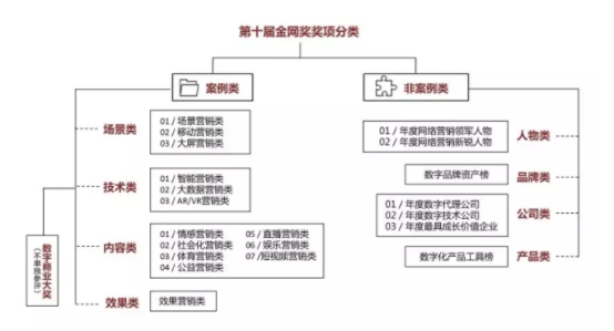 作為致力于推進(jìn)企業(yè)數(shù)字商業(yè)進(jìn)化的營(yíng)銷獎(jiǎng)項(xiàng),金網(wǎng)獎(jiǎng)2018年獎(jiǎng)項(xiàng)設(shè)置將劃分為內(nèi)容類、場(chǎng)景類、技術(shù)類、效果類四大類,同時(shí)設(shè)數(shù)字商業(yè)大獎(jiǎng),綜合考評(píng)案例的企業(yè)數(shù)字化能力。
