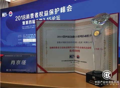3月15日,富勤財(cái)富受邀參加“2018消費(fèi)者權(quán)益保護(hù)峰會(huì)暨第四屆金融3·15論壇”。并榮獲峰會(huì)授予的“金融消費(fèi)者合法權(quán)益保護(hù)企業(yè)社會(huì)責(zé)任CSR‘優(yōu)秀企業(yè)獎(jiǎng)’”。