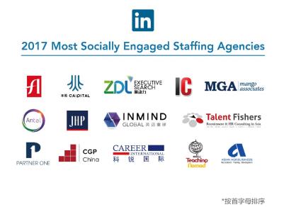 3月20日,上海——近日,全球領(lǐng)先的職場社交平臺LinkedIn(領(lǐng)英)在上海舉辦了“2017年最具社交影響力招聘機構(gòu)榜單”(Most Socially Engaged Staffing Agencies)發(fā)布及頒獎典禮。期間,領(lǐng)英宣布了2017年中國最具社交影響力的15家人才招聘機構(gòu)榜單,并邀請來自國內(nèi)眾多人才招聘機構(gòu)的人力資源專家們共聚一堂,探討了AI時代人力資源行業(yè)面臨的變化與機遇,以及如何使用新技術(shù)助力企業(yè)獲取人才洞察、提升招聘效率和打造雇主品牌。