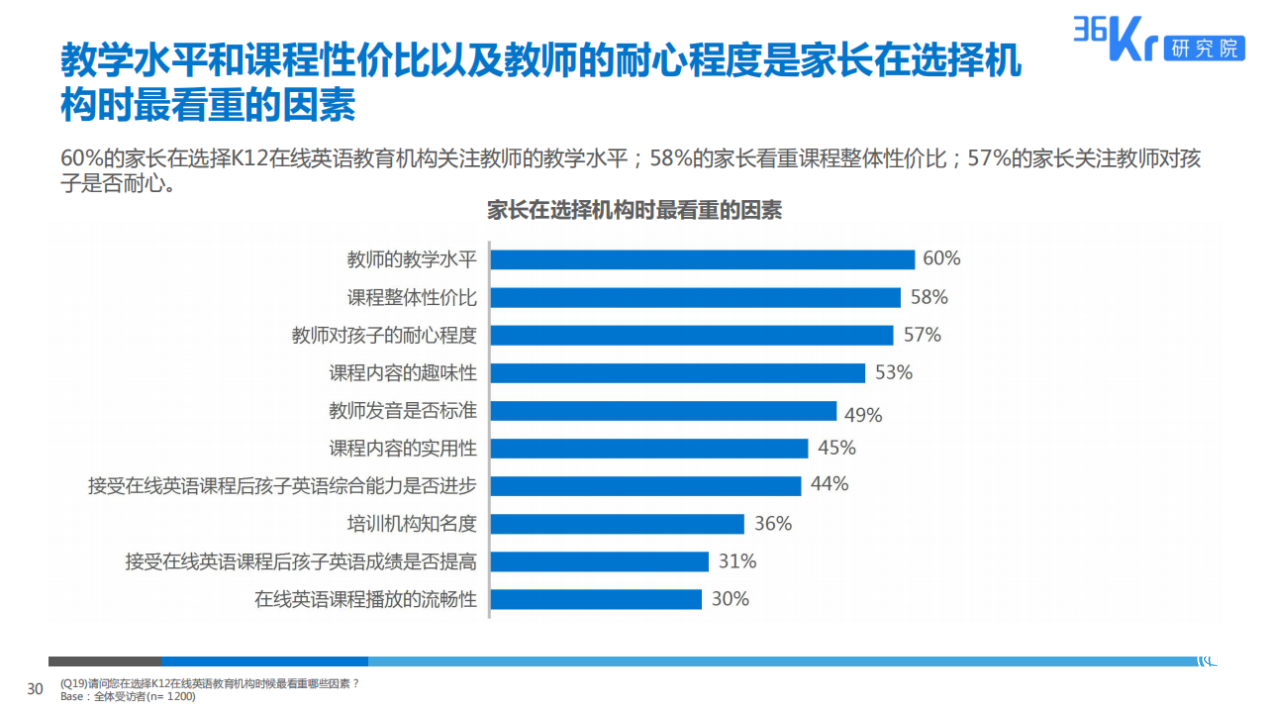 36氪研究院此次調(diào)研針對K12受眾即兒童至青少年的家長群體進(jìn)行統(tǒng)計學(xué)研究,對K12在線英語教育的接受程度、需求程度、月均可承擔(dān)費(fèi)用、課程內(nèi)容傾向、上課頻次及時長、效果期待度等態(tài)度信息進(jìn)行全面深度調(diào)研。