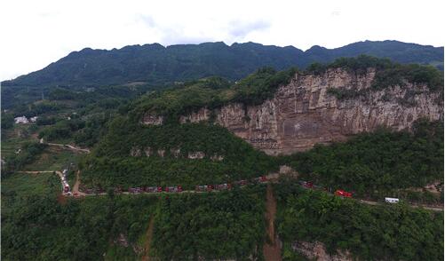 杰瑞壓裂車組行駛在四川頁巖氣地區(qū)蜿蜒的山路中