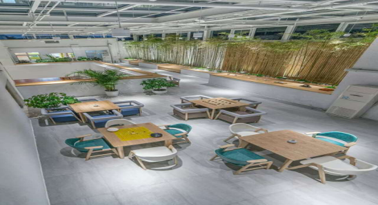 在空中花園里,通過將原有室外空間和室內(nèi)空間相融合,加大了公共區(qū)域,使得空間更開闊。同時,把景觀引入室內(nèi),整個空中花園在整體布局上更加別具一格。