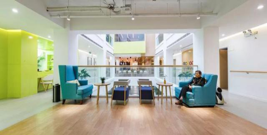 【鄰里家長者樂園】的建筑整體由倫敦扎哈設(shè)計師事務(wù)所的年輕設(shè)計團(tuán)隊操刀設(shè)計改造,整體風(fēng)格清新、時尚,充滿了年輕和活力氣氛。