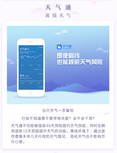 天氣通作為國內(nèi)最早的手機專業(yè)天氣軟件,活躍用戶覆蓋率已連續(xù)多季度穩(wěn)居中國天氣應(yīng)用前列。根據(jù)相關(guān)數(shù)據(jù)顯示,發(fā)展至今已有8年的天氣通,用戶總數(shù)已經(jīng)接近4億。縱觀天氣通升級迭代的版本可以看出,其致力于為用戶打造風(fēng)、雨、雪、高溫等惡劣天氣的不同場景,并通過技術(shù)呈現(xiàn)天氣情況,充分將天氣和出行的場景緊密結(jié)合,讓用戶生活更智能,幫助用戶出行決策。