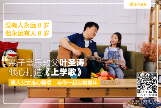 3月27日,51Talk值開學(xué)季聯(lián)合《爸爸去哪兒》主題曲創(chuàng)作人葉圣濤,致敬經(jīng)典,推出新版《上學(xué)歌》。此歌一經(jīng)推出,便在家長(zhǎng)中引起熱烈反響。一對(duì)父女把自己翻唱的新版《上學(xué)歌》發(fā)布在網(wǎng)上,引發(fā)網(wǎng)友熱議,思想聚焦和音樂鋪?zhàn)拥却骎紛紛轉(zhuǎn)發(fā)。