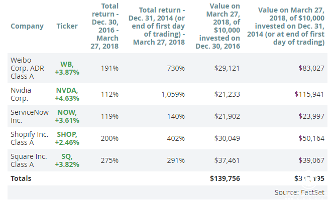 去年科技股迭創(chuàng)新高引領(lǐng)美股股市一片飄紅,而近來這段時期的回調(diào)開始讓投資者重新審視是否該把錢袋子放入「FAANG」。來自Marketwatch的分析師則表示:美股科技板塊除了「FAANG」之外,還有很多潛力股,或許投資者可以關(guān)注下科技板塊新秀「WNSSS」(發(fā)音「WINS」):包括微博(Weibo)、英偉達(dá)(Nvidia)、Servicenow、Shopify和Square。近幾年它們的表現(xiàn)證明了其未來或許可以撼動「FAANG」的地位。
