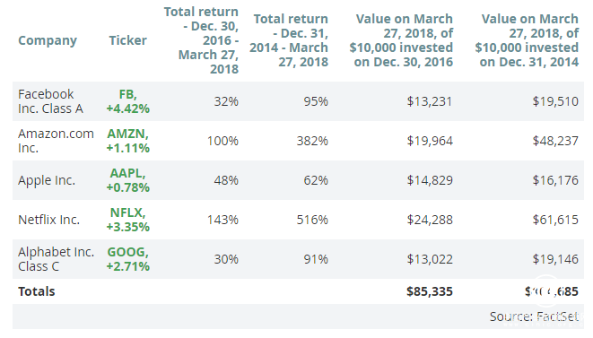 先來瀏覽下「FAANG」的漲幅統(tǒng)計: