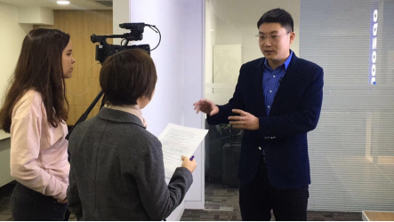 漢柏科技常務(wù)副總裁邱召強接受朝日電視臺采訪