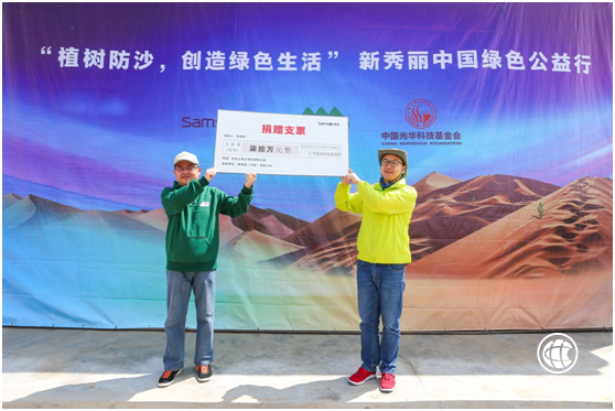 2017年7月,新秀麗中國首次與韓中文化青少年協(xié)會[未來林]合作的中國土地荒蕪(沙漠、荒漠化)地區(qū)“新秀麗綠色生態(tài)園建設(shè)項(xiàng)目”就已正式啟動。2018年新秀麗(中國)有限公司繼續(xù)進(jìn)行“植樹防沙,創(chuàng)造綠色生活”公益行項(xiàng)目,4月21日捐贈儀式活動現(xiàn)場,新秀麗(中國)有限公司的企業(yè)代表——大中華區(qū)財(cái)務(wù)總監(jiān)陳靈國先生正式向韓中文化青少年協(xié)會[未來林]捐贈七十萬人民幣的支票,用于繼續(xù)支持推行2018年一整年植樹防沙綠色公益。同時新秀麗(中國)有限公司 “以心換新 行無止境”市場公益活動代表——大中華區(qū)市場總監(jiān)吳永紅女士則代表所有參與換購公益活動的顧客正式向韓中文化青少年協(xié)會[未來林]捐贈4985棵樹苗,將來自全國各地新秀麗顧客們的愛心根植于庫布齊沙漠這片大地,植樹防沙,為沙漠增添一抹綠色。