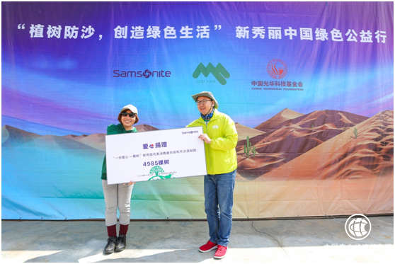 一棵樹可以解決4平方米的荒漠化問題,為改善土地沙漠化,還沙漠更多綠色,2018年1月12日至2月15日期間,Samsonite新秀麗面向新老顧客發(fā)起主題為“以心換新?行無止境”的公益換購活動,消費(fèi)者可憑舊行李箱換購新秀麗公益箱Pixelon系列;每換購1件產(chǎn)品,新秀麗即代表顧客向庫布齊沙漠捐贈1棵樹。截止活動結(jié)束,共計(jì)有4985名顧客朋友參與到本次公益行為當(dāng)中。4月20日至22日,來自新秀麗的員工志愿者、新秀麗顧客代表及媒體嘉賓30余人,攜本次公益換購活動籌集的4985棵樹苗,遠(yuǎn)赴內(nèi)蒙古鄂爾多斯庫布齊沙漠,植樹防沙,栽種“綠色”希望,用心實(shí)現(xiàn)一份綠色承諾,為防治土地沙漠化貢獻(xiàn)了一份微薄而切實(shí)的力量。