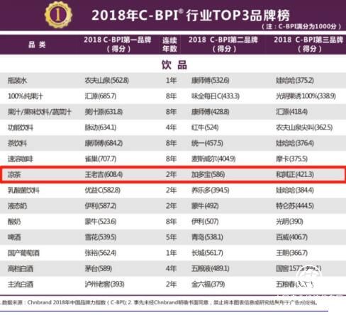 4月10日,中國品牌評(píng)級(jí)的權(quán)威機(jī)構(gòu)Chnbrand發(fā)布了第八屆2018年中國品牌力指數(shù)(C-BPI®)的品牌排名和分析報(bào)告。涼茶始祖王老吉再次折桂,連續(xù)兩年獲得涼茶飲料品牌排行榜第一名的好成績,進(jìn)一步驗(yàn)證了行業(yè)及消費(fèi)者對(duì)王老吉強(qiáng)大而穩(wěn)定的品牌影響力的認(rèn)可,為接下來飲料銷售旺季的奮戰(zhàn)注下一劑強(qiáng)心針。