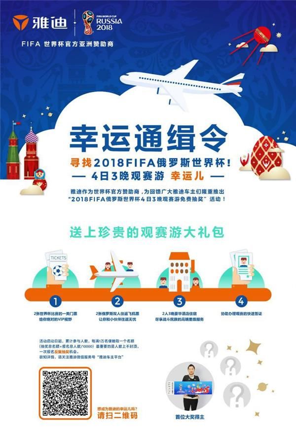 即日起,購買指定車型就能享受雅迪“雙保”服務(wù),成為車主后,還能參加“FIFA俄羅斯世界杯4日3晚觀賽游”大禮包抽獎活動,趕快去附近雅迪門店選購你的愛車吧!
