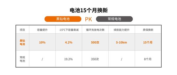2.電池15個月免費換新,更高性能的雅迪專供黑鉆多跑5-10公里!