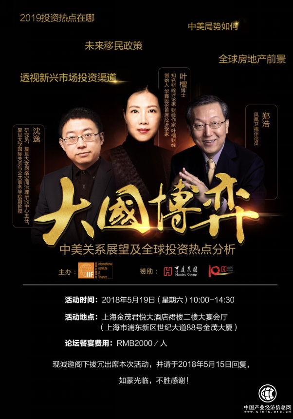 那么投資者到底該如何把握此次機(jī)會(huì)呢?大國博弈——中美關(guān)系展望及全球投資熱點(diǎn)分析餐宴論壇,將為您一解迷霧。是次論壇將于2018年5月19日10:00-14:30在上海金茂君悅大酒店舉行,由國際金融學(xué)院主辦、香港亨達(dá)集團(tuán)以及亨達(dá)澳洲贊助舉行。此次論壇有幸邀請(qǐng)到了知名財(cái)經(jīng)評(píng)論家、華鑫股份首席經(jīng)濟(jì)學(xué)家葉檀博士,復(fù)旦大學(xué)國際關(guān)系與公共事務(wù)學(xué)院副教授研究員、復(fù)旦大學(xué)網(wǎng)絡(luò)空間治理研究中心沈逸主任,以及對(duì)中美關(guān)系見解獨(dú)到的現(xiàn)任鳳凰衛(wèi)視時(shí)事評(píng)論員、美國布魯金斯學(xué)會(huì)訪問學(xué)者鄭浩先生,為各界人士探討中美博弈之下的未來展望和全球投資熱點(diǎn)分析。