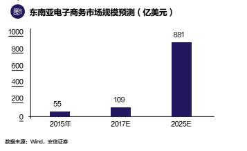 同時,東南亞的互聯(lián)網(wǎng)經(jīng)濟發(fā)展迅速。根據(jù)谷歌和淡馬錫的一個共同研究表明,至2025年,東南亞地區(qū)的電子商務(wù)規(guī)模將增長至881億美元,是2015年的16倍。目前,東南亞國家的電子商務(wù)滲透率極低,以東南亞最大的電子商務(wù)市場——印度尼西亞為例,2017年電子商務(wù)市場規(guī)模為17億美元,僅占總零售額的0.6%,而相比之下,同為亞洲國家的中國和韓國的電子商務(wù)銷售額占比分別為16%和18%??梢姈|南亞國家電子商務(wù)市場的增長空間巨大。