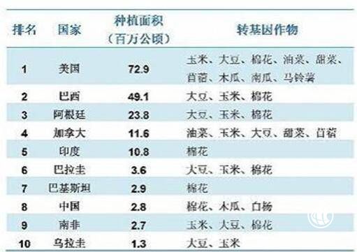 <2016年轉基因作物十大國家種植情況>
