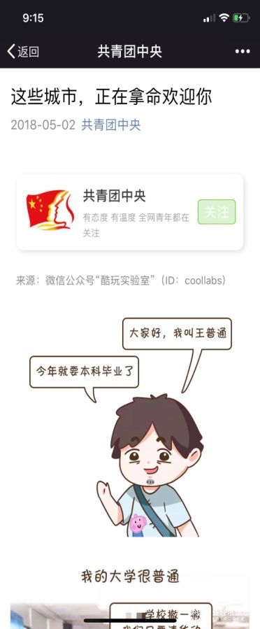 五一期間,自媒體大號“酷玩實驗室”用漫畫的方式,參考華商韜略文章改編創(chuàng)作了《這些城市,正在拿命歡迎你》,不但再次刷爆朋友圈,還引來《人民日報》公眾號、共青團(tuán)中央公眾號、中國經(jīng)濟(jì)網(wǎng)公眾號的頭條轉(zhuǎn)載。