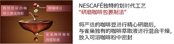 “NESCAFÉ香味焙煎”,是以自身正宗的香氣和新鮮的口感著稱,采用NESCAFÉ獨(dú)特的“研磨咖啡包裹制法”制作而成的速溶咖啡。這個(gè)制作方法將嚴(yán)選的咖啡豆焙煎后研磨成粉,與NESCAFÉ獨(dú)有的咖啡萃取液混合、干燥,并放入可溶咖啡粉中密封,減少與空氣的接觸。這種做法可以防止咖啡豆的氧化,讓任何人都可以輕松地享受咖啡豆原始的香氣和味道。