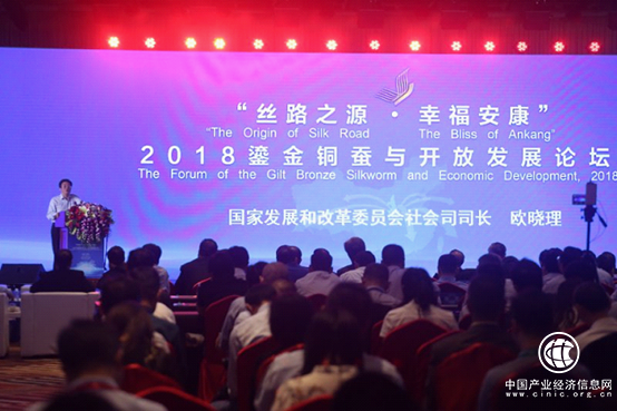 作為“第三屆絲博會”的重要活動,2018鎏金銅蠶與開放發(fā)展論壇于5月13日在西安召開。本次論壇的主題為“絲路之源.幸福安康”,聚焦一帶一路建設(shè)和安康發(fā)展。論壇由陜西省人民政府主辦,陜西省發(fā)改委、陜西省文物局和安康市政府承辦。陜西省副省長魏增軍、陜西省人大常委會副主任、安康市委書記郭青、安康市長趙俊民、原外經(jīng)貿(mào)部副部長龍永圖、原國家統(tǒng)計局總經(jīng)濟(jì)師姚景源、國家發(fā)改委社會司司長歐曉理、陜西歷史博物館館長強(qiáng)躍、陜西省文聯(lián)副主席肖云儒等幾十位嘉賓出席論壇并致辭。