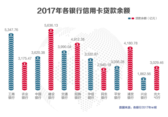 信用卡貸款余額方面,行業(yè)前三名為建行信用卡、工行信用卡、招行信用卡。