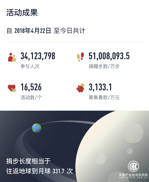 捐步總數(shù)可往返月球地球331.7次