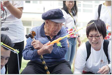 由英皇集團員工組成的英皇義工隊,在楊受成(中國·昌黎)關愛老年中心與老人互動游戲