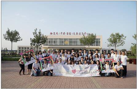 由北京、深圳、香港、澳門四地組成的英皇義工隊在楊受成(中國·昌黎)關愛老年中心合影留念