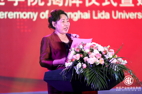 圖為:上海立達(dá)學(xué)院校長劉鶴霞在上海立達(dá)學(xué)院揭牌儀式暨建校15周年慶典上致辭