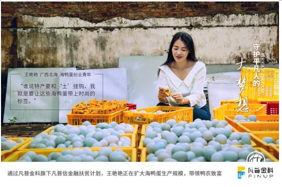 在凡普信金融扶貧計劃的服務人群中,有立志打響合浦特產名號的退伍軍人,有渴望參與到家鄉(xiāng)變化的返鄉(xiāng)青年,還有探索帶領鴨農致富的“海鴨蛋潮牌”創(chuàng)業(yè)媽媽。作為鄉(xiāng)村創(chuàng)業(yè)的帶頭人,可靠的金融信息服務,成為他們帶領村民致富路上的堅實后盾。