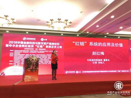 無極道控股集團(tuán)董事長趙紅梅女士就“紅鏈”系統(tǒng)的應(yīng)用和價(jià)值與論壇進(jìn)行了專題分享