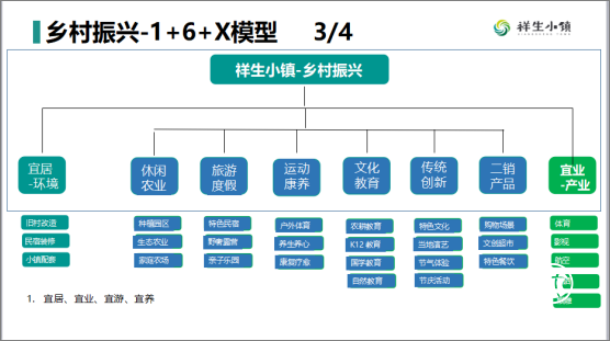 在產(chǎn)業(yè)整合和鄉(xiāng)村振興方面,祥生小鎮(zhèn)集團有自己的一套運營邏輯——“1+6+X”,即宜居先導,首先滿足對美好生活環(huán)境的的向往,其次是產(chǎn)業(yè)的導入,祥生小鎮(zhèn)目前在做的包括體育、影視、航空、富硒、根雕等產(chǎn)業(yè),再次是產(chǎn)品業(yè)態(tài)的落地,包括“休閑農(nóng)業(yè)、旅游度假、運動康養(yǎng)、文化教育、傳統(tǒng)創(chuàng)新、二銷產(chǎn)品”6大業(yè)態(tài)維度。