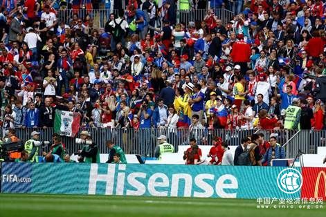 在所有的中國品牌贊助商中,海信在體育營銷上最為輕車熟路。2016年,這個歐洲杯56年歷史上第一個來自中國的全球頂級贊助商,貢獻(xiàn)了鋪天蓋地的海信綠和洗腦般的“海信電視,中國第一”,被業(yè)界稱為一次教科書式的精彩策劃。6月14日的世界杯揭幕賽現(xiàn)場,海信又一次用俄文出其不意。