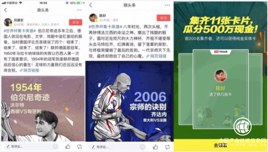 為迎接世界杯的到來,今日頭條發(fā)起了世界杯集卡英雄活動:集齊11張神秘卡片,瓜分500萬現(xiàn)金,集齊32張神秘卡片,拿純金實體卡,更有百位明星大咖齊聚微頭條為集卡活動助力。