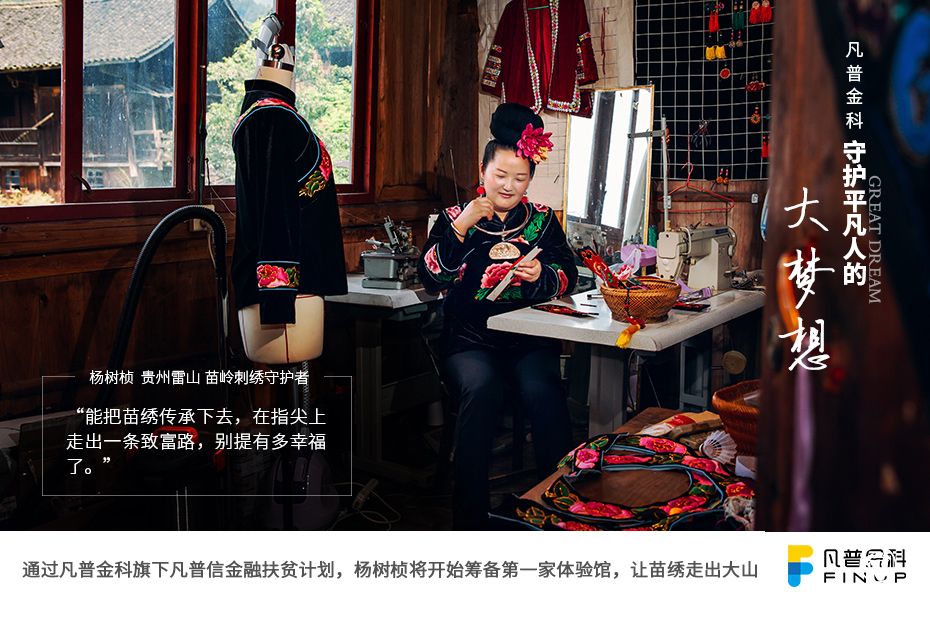 貴州雷公山下的楊樹楨正是這一計(jì)劃的受益者之一。2008年之前,楊樹楨一直輾轉(zhuǎn)在各個(gè)城市的工廠,做過鞋子、茶葉。為了孩子的教育問題,楊樹楨決心回到家里創(chuàng)業(yè)。現(xiàn)在,楊樹楨的苗繡銷往了貴州、上海、廣東等許多地方。“可以送孩子上下學(xué),親自給他做飯,還能時(shí)時(shí)關(guān)心著父母,最主要的,生活有可觀的收入,這讓我很幸福。”楊樹楨說,她希望在凡普信公益性小額信貸信息服務(wù)項(xiàng)目的幫助下,能夠讓苗繡文化傳遞到更廣闊的土壤中。
