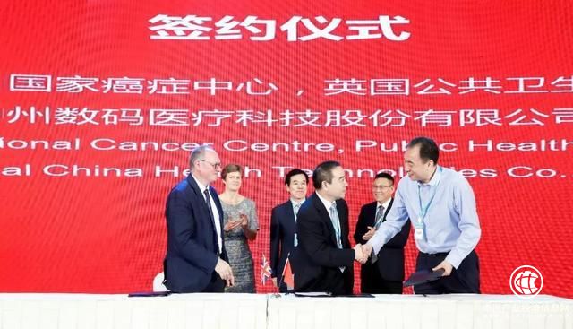 中國國家癌癥中心主任赫捷院士、英國駐華使館大使吳百納爵士、神州控股董事局主席郭為先生作為見簽人共同見證了這一歷史時刻。國家癌癥中心院長助理馬建輝先生、英國公共衛(wèi)生署國家級登記和癌癥分析中心主任Jem Rashbass先生、神州醫(yī)療總裁史文釗先生分別在協(xié)議上簽字。